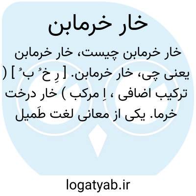 خار خرمابن. [ رِ خ ُ ب ُ ] ( ترکیب اضافی، اِ مرکب ) خار درخت خرما. یکی از معانی لغت طَمیل میباشد. ( منتهی الارب ).