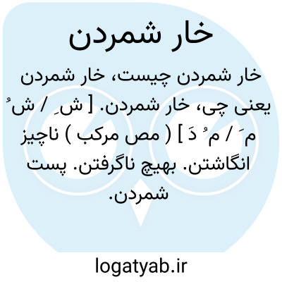 خار شمردن. [ ش ِ / ش ُ م َ / م ُ دَ ] ( مص مرکب ) ناچیز انگاشتن. بهیچ ناگرفتن. پست شمردن. حقیر گرفتن. احتقار. ( منتهی الارب ).