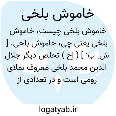 خاموش بلخی. [ ش ِ ب َ ] ( اِخ ) تخلص دیگر جلال الدین محمد بلخی معروف بملای رومی است و در تعدادی از غزلیات خودرا به این تخلص نامیده است. ( از الذریعه الی تصانیف الشیعه تألیف آقابزرگ طهرانی قسم 1 جزء 9 ص 285 ).