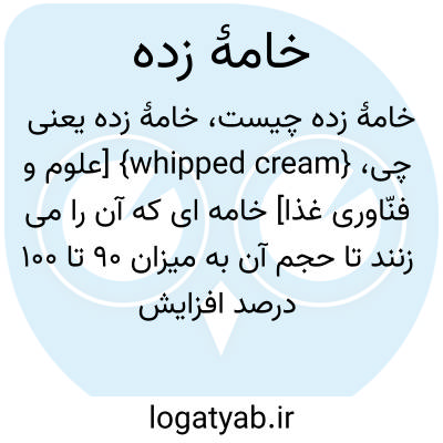 {whipped cream} [علوم و فنّاوری غذا] خامه ای که آن را می زنند تا حجم آن به میزان 90 تا 100 درصد افزایش یابد
