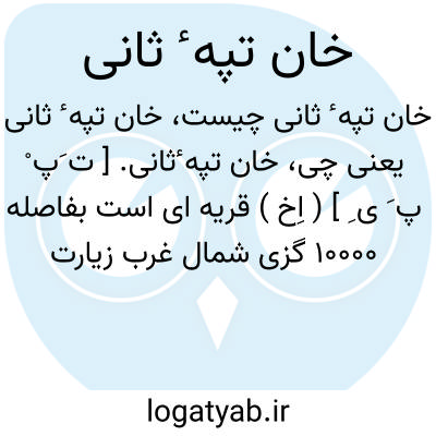 خان تپه ٔثانی. [ ت َپ ْ پ َ ی ِ ] ( اِخ ) قریه ای است بفاصله 10000 گزی شمال غرب زیارت خواجه سالار که در علاقه حکومت کلان شبرغان قرار دارد و متعلق بولایت مزارشریف میباشد، و بین خط 66 درجه و 23 ثانیه طول البلد شرقی و خط 37 درجه و 26 دقیقه و 12 ثانیه عرض البلد شمالی واقع است. ( از قاموس جغرافیایی افغانستان ج 2 ).