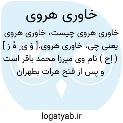 خاوری هروی.[ وَ ی ِ هََ رَ ] ( اِخ ) نام وی میرزا محمد باقر است و پس از فتح هرات بطهران آمد و در تهران سکنی گزید در کتاب مدایح المعتمدی فضل او ستوده شده و قصاید چندی نیز از او آمده است. سبکش در شعر خراسانی قدیم است. ( از الذریعه الی تصانیف الشیعه قسم 1 از جزء 9 ).