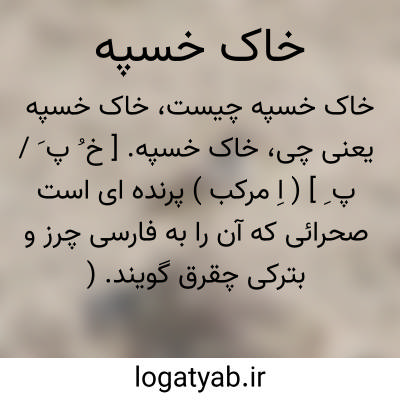 خاک خسپه. [ خ ُ پ َ / پ ِ ] ( اِ مرکب ) پرنده ای است صحرائی که آن را به فارسی چرز و بترکی چقرق گویند. ( برهان قاطع ) ( آنندراج ).