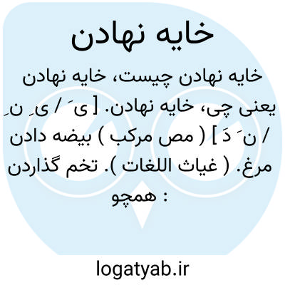 خایه نهادن. [ ی َ / ی ِ ن ِ / ن َ دَ ] ( مص مرکب ) بیضه دادن مرغ. ( غیاث اللغات ). تخم گذاردن: