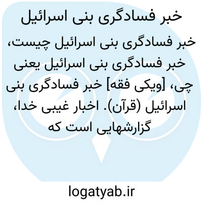 [ویکی فقه] خبر فسادگری بنی اسرائیل (قرآن). اخبار غیبی خدا، گزارشهایی است که خداوند از حوادث گذشته و یا آینده داده و این گزارشها از نظرها پنهان بوده است که یکی از این اخبار خبر فسادگری بنی اسرائیل ذکر شده است.