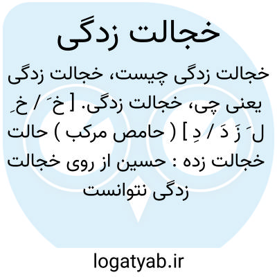 خجالت زدگی. [ خ َ / خ ِ ل َ زَ دَ / دِ ] ( حامص مرکب ) حالت خجالت زده: حسین از روی خجالت زدگی نتوانست غذا بخورد. فلانی بر اثر خجالت زدگی دیگر روی دیدار آنها ندارد.