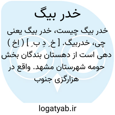 خدربیگ. [ خ ِ دِ ب ِ ] ( اِخ ) دهی است از دهستان بندگان بخش حومه شهرستان مشهد. واقع در هزارگزی جنوب خاوری مشهد. این ناحیه در جلگه قرار دارد و آب و هوای آن معتدل و دارای 122 تن سکنه فارسی زبانست. آب آن از قنات و محصولاتش: غلات و بنشن میباشد. اهالی بکشاورزی و مالداری گذاران می کنند و راه آن اتومبیل رو است. ( از فرهنگ جغرافیایی ایران ج 9 ).