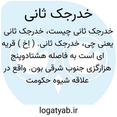 خدرجک ثانی. ( اِخ ) قریه ای است به فاصله هشتادوپنج هزارگزی جنوب شرقی بون. واقع در علاقه شیوه حکومت اعلی بدخشان افغانستان بمختصات جغرافیایی زیر: طول شرقی 71 درجه و 14 دقیقه و 58 ثانیه و عرض شمالی: 37 درجه و 23 دقیقه و 42 ثانیه. ( از قاموس جغرافیایی افغانستان ج 2 ).