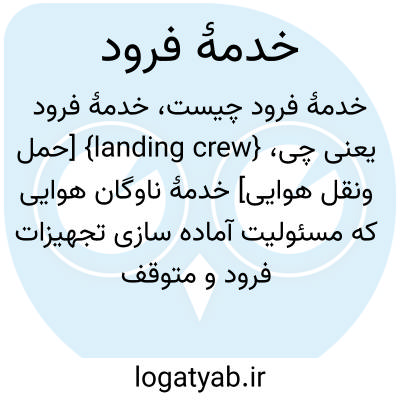 {landing crew} [حمل ونقل هوایی] خدمۀ ناوگان هوایی که مسئولیت آماده سازی تجهیزات فرود و متوقف ساختن هواپیما و راهنمایی آن به محل توقف را بر عهده دارند