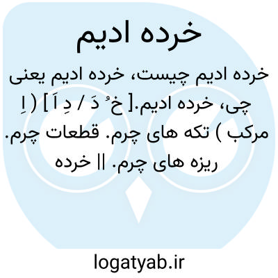 خرده ادیم.[ خ ُ دَ / دِ اَ ] ( اِ مرکب ) تکه های چرم. قطعات چرم. ریزه های چرم. || خرده ادیم ( ترکیب اضافی، اِ مرکب ) ته مانده سفره. ته سفره. خرده سماط. آنچه از غذا در سفره باقی ماند. ( یادداشت بخط مؤلف ).