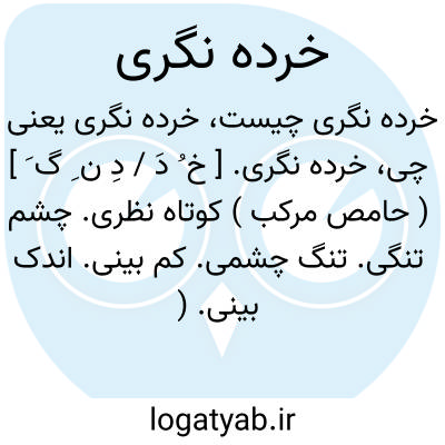 خرده نگری. [ خ ُ دَ / دِ ن ِ گ َ ] ( حامص مرکب ) کوتاه نظری. چشم تنگی. تنگ چشمی. کم بینی. اندک بینی. ( یادداشت بخط مؤلف ): و با او در این باب مناظره میکردند و آن مرد با ایشان مُکاسبی و خرده نگری میکرد و ایشان زمان زمان متعرض می شدند و جوزهای او را برمی گرفتند. ( تاریخ قم ص 72 ).