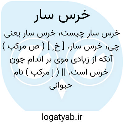 خرس سار. [ خ ِ ] ( ص مرکب ) آنکه از زیادی موی بر اندام چون خرس است. || ( اِ مرکب ) نام حیوانی بوده بنقل حمداﷲ مستوفی که بشکل و نطق مانند آدمی و بسیار موی بر اندام مانند خرس لکن از عقل و تمییز بهره ندارد و سخنش مفهوم نشود. ( نزهة القلوب ).