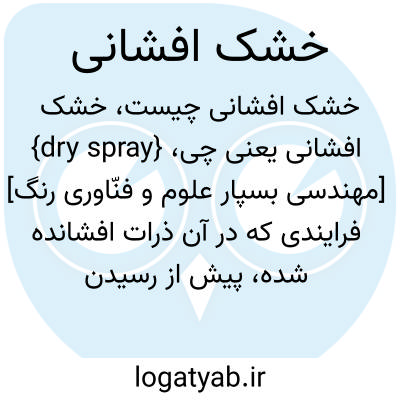 {dry spray} [مهندسی بسپار علوم و فنّاورى رنگ] فرایندی که در آن ذرات افشانده شده، پیش از رسیدن به سطح، تا حدودی خشک می شوند و درنتیجه پوششی شنی ایجاد می شود