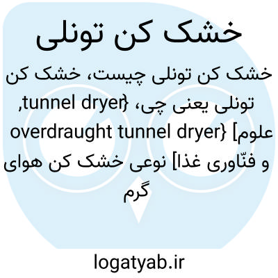{tunnel dryer, overdraught tunnel dryer} [علوم و فنّاوری غذا] نوعی خشک کن هوای گرم که در آن مواد غذایی بر روی سینی های متحرک قرار می گیرند و با عبور از تونل هوای گرم خشک می شوند