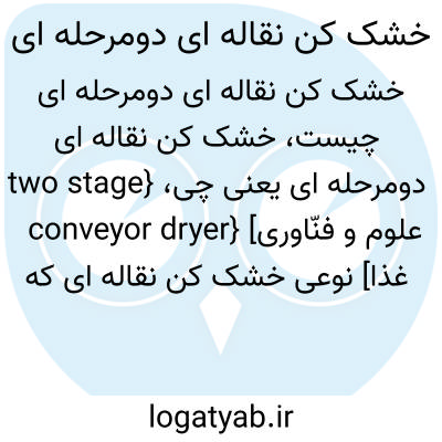 {two stage conveyor dryer} [علوم و فنّاوری غذا] نوعی خشک کن نقاله ای که در آن محصول در دو مرحلۀ متفاوت خشک می شود و دما و سرعت حرکت و ضخامت محصول در مرحلۀ اول و دوم متفاوت است