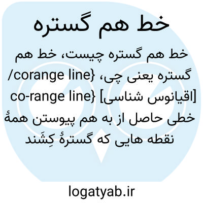 {corange line/ co-range line} [اقیانوس شناسی] خطی حاصل از به هم پیوستن همۀ نقطه هایی که گسترۀ کِشَند آنها با یکدیگر برابر است