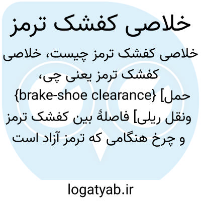 {brake-shoe clearance} [حمل ونقل ریلی] فاصلۀ بین کفشک ترمز و چرخ هنگامی که ترمز آزاد است