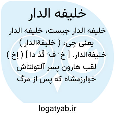 ( خلیفةالدار ) خلیفةالدار. [ خ َ ف َ تُدْ دا ] ( اِخ ) لقب هارون پسر آلتونتاش خوارزمشاه که پس از مرگ خوارزمشاه این لقب از جانب مسعود بدو اعطا شد. ( از تاریخ بیهقی ).