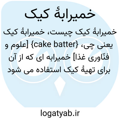 {cake batter} [علوم و فنّاوری غذا] خمیرابه ای که از آن برای تهیۀ کیک استفاده می شود