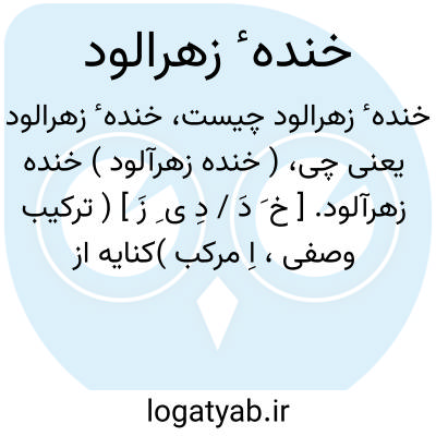 ( خنده زهرآلود ) خنده زهرآلود. [ خ َ دَ / دِ ی ِ زَ ] ( ترکیب وصفی، اِ مرکب )کنایه از خنده ای که از روی قهر باشد و آن را خنده خون آلود نیز گویند. ( انجمن آرای ناصری ):