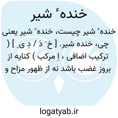 خنده شیر. [ خ َ دَ / دِ ی ِ ] ( ترکیب اضافی، اِ مرکب ) کنایه از بروز غضب باشد نه از ظهور مزاح و هزل. ( انجمن آرای ناصری ):