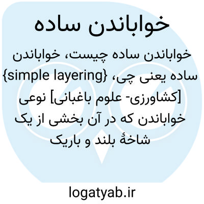 {simple layering} [کشاورزی- علوم باغبانی] نوعی خواباندن که در آن بخشی از یک شاخۀ بلند و باریک به جز انتهای آن در زیر خاک قرار می گیرد تا ریشه دار شود