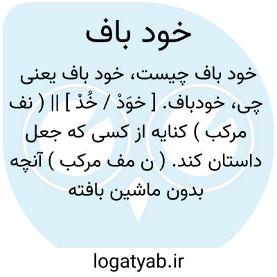 خودباف. [ خوَدْ / خُدْ ] || ( نف مرکب ) کنایه از کسی که جعل داستان کند. ( ن مف مرکب ) آنچه بدون ماشین بافته شده. || نعت است برای داستانی موهوم که بر اثر جعل کسی بوجود آمده.