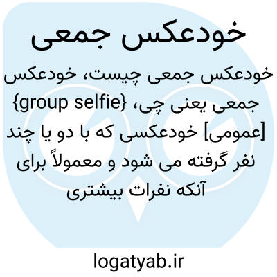 {group selfie} [عمومی] خودعکسی که با دو یا چند نفر گرفته می شود و معمولاً برای آنکه نفرات بیشتری را پوشش دهد از تصویر افراد در آینه عکس گرفته می شود