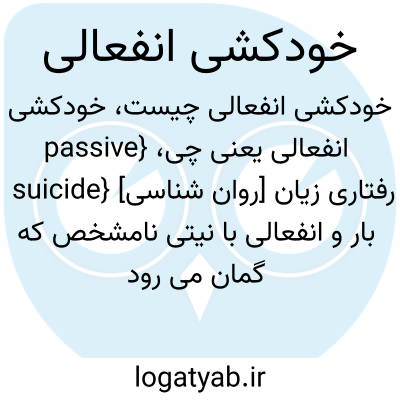 {passive suicide} [روان شناسی] رفتاری زیان بار و انفعالی با نیتی نامشخص که گمان می رود فرد با انجام آن قصد از بین بردن خود را داشته باشد