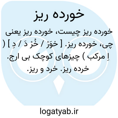 خورده ریز. [ خوَرْ / خُرْ دَ / دِ ] ( اِ مرکب ) چیزهای کوچک بی ارج. خرده ریز. خرد و ریز.
