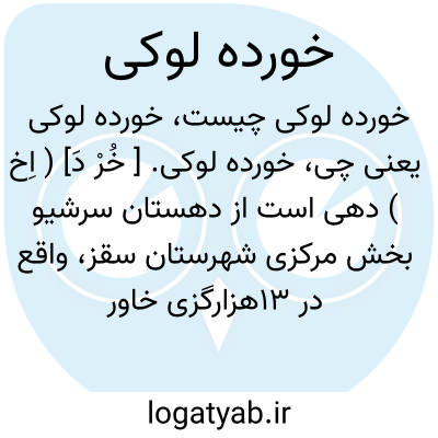خورده لوکی. [ خُرْ دَ] ( اِخ ) دهی است از دهستان سرشیو بخش مرکزی شهرستان سقز، واقع در 13هزارگزی خاور سقز و جنوب شوسه سقز به سنندج. این ده کوهستانی با آب و هوای سردسیری و 420 تن سکنه است. آب آن از چشمه و محصول آن غلات و لبنیات و توتون و مختصر میوه. شغل اهالی زراعت و گله داری. راه مالرو است. ( از فرهنگ جغرافیایی ایران ج 5 ).