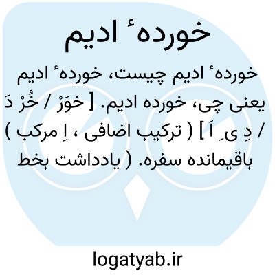 خورده ادیم. [ خوَرْ / خُرْ دَ / دِ ی ِ اَ ] ( ترکیب اضافی، اِ مرکب ) باقیمانده سفره. ( یادداشت بخط مؤلف ).، خورده ادیم. [ خوَرْ / خُرْ دَ / دِ اَ ] ( اِ مرکب ) مازویی که در دباغت چرم بکار می برند. ( ناظم الاطباء ).