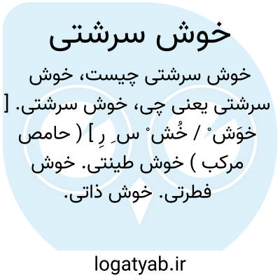 خوش سرشتی. [ خوَش ْ / خُش ْ س ِ رِ ] ( حامص مرکب ) خوش طینتی. خوش فطرتی. خوش ذاتی.