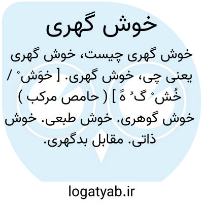 خوش گهری. [ خوَش ْ / خُش ْ گ ُ هََ ] ( حامص مرکب ) خوش گوهری. خوش طبعی. خوش ذاتی. مقابل بدگهری.