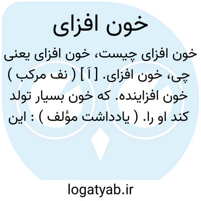 خون افزای. [ اَ ] ( نف مرکب ) خون افزاینده. که خون بسیار تولد کند او را. ( یادداشت مؤلف ): این منفعت مردم خون افزای و گرم مزاج را سودتر از آن دارد که خداوند ذات الجنب... را. ( ذخیره خوارزمشاهی ). مزاج مردم خون افزای گرم و تر باشد و خون او غلیظ و سخت سرخ باشد. ( ذخیره خوارزمشاهی ). اگر مردم خون افزای از بهر عرق النساء و نقرس و درد اندامها... از هر یک چندی فصد کند روا باشد. ( ذخیره خوارزمشاهی ). و سرخی خون او کمتر از سرخی خون مردم خون افزای باشد. ( ذخیره خوارزمشاهی ).