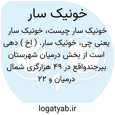 خونیک سار. ( اِخ ) دهی است از بخش درمیان شهرستان بیرجندواقع در 49 هزارگزی شمال درمیان و 22 هزارگزی خاور شوسه عمومی درح. ( از فرهنگ جغرافیایی ایران ج 9 ).