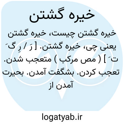 خیره گشتن. [ رَ / رِ گ َ ت َ ] ( مص مرکب ) متعجب شدن. تعجب کردن. بشگفت آمدن. بحیرت آمدن از فرط تعجب. حیران شدن از نهایت شگفتی: