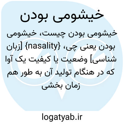 {nasality} [زبان شناسی] وضعیت یا کیفیت یک آوا که در هنگام تولید آن به طور هم زمان بخشی از هوا از خیشوم و بخش دیگر از دهان خارج شود