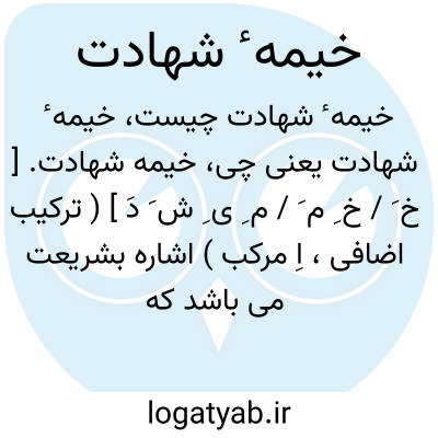 خیمه شهادت. [ خ َ / خ ِ م َ / م ِ ی ِ ش َ دَ ] ( ترکیب اضافی، اِ مرکب ) اشاره بشریعت می باشد که در خیمه نگاه داشته میشد و همواره بر تسلط و تقدس حضرت واجب الوجود شاهد می بود و یا اشاره بظهورخدای تعالی در آن خیمه میباشد. ( قاموس کتاب مقدس ).
