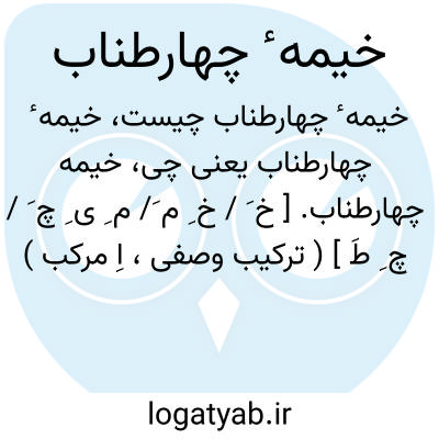 خیمه چهارطناب. [ خ َ / خ ِ م َ/ م ِ ی ِ چ َ / چ ِ طَ ] ( ترکیب وصفی، اِ مرکب ) کنایه از عالم عناصر. کنایه از عالم چهارعنصر: