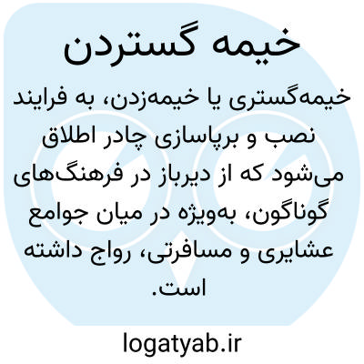 خیمه گستردن. [ خ َ / خ ِ م َ / م ِ گ ُ ت َ دَ ] ( مص مرکب ) خیمه زدن.چادر برپا کردن. نصب چادر کردن. ( یادداشت مؤلف ).
