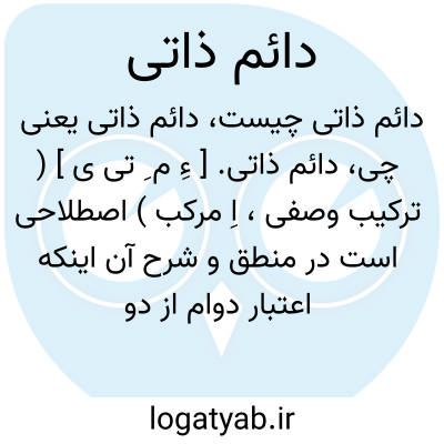 دائم ذاتی. [ ءِ م ِ تی ی ] ( ترکیب وصفی، اِ مرکب ) اصطلاحی است در منطق و شرح آن اینکه اعتبار دوام از دو گونه کنند: اول آنکه عموم و خصوص میان ضرورت و دوام اعتبار نکنند، بل ملاحظت دوام تنها کنند. و به این اعتبار، یا محمول موضوع را دائم بود بدوام ذات موضوع، یا بدوام صفت او، و اول یا دائم مطلق بود ازلا و ابداً، و آن آنجا بود که ذات موضوع دائم الوجود باشد مثالش: خدای تعالی عالم است همیشه یا نه چنین بود، یعنی ذات موضوع دائم الوجود نبود. مثالش: انسان حساس است همیشه و این همیشگی نه چون همیشگی اول است و هر دو را دائم ذاتی خوانند، چه در همه اوقات وجود ذات در هر دو صورت حمل حاصل بود و دائم مطلق، این دو قسم بود. و اما دائم را بدوام وصف موضوع، عرفی خوانند بسببی که بعد از این بگوئیم و آن یا دائم بود بدوام وصف مطلقا و اعتبار مفارقت و لامفارقت ذات نکنند، یا دائم بود بدوام وصفی که آن وصف مفارق ذات شود در بعضی اوقات، پس حمل دائم نبود بدوام ذات و اول عرفی عام باشد، و دوم عرفی خاص و اول بر دوم مشتمل بود و بر آنکه دائم بود بدوام وصفی که هرگز مفارق ذات نشود چنانکه در ضروری گفته آمده است و حکم بردوام بحسب شرط که عاید با محمول بود همچنان است بعینه که در ضرورت گفته آمد و اما آنچه بحسب امری خارج از موضوع و محمول بود آن را از اقسام دائمه نشمرند، چه دوام و بودن در بعضی اوقات بحسب وضع لغت متقابلان اند پس بر این تقدیر قضایاء دائمه سه صنف بود: دائم ذاتی، عرفی عام، عرفی خاص. و متقدمان اهل این صناعت به اعتبار فرق میان دائم و ضروری التفات نکرده اند و متأخران گفته اند: بر منطقی واجب بود احکام هر یکی علیحده بیان کردن و اگر چه شاید فی نفس الامر هر دو در دلالت متساوی باشند پس کسانی که اعتبار فرق نکنند، ضروری و دائم ذاتی یکی شمرند، و آن را قسمت کنند به دائم مستمرالوجود ازلاً و ابداً، و دائم مشروط بشرط وجودذات موضوع. و همچنین مشروط و عرفی یکی شمرند، چه باعتبار عموم و چه باعتبار خصوص. و اما اگر اعتبار دوام و ضرورت با هم کرده شود، دائم چنانکه گفتیم بر اطلاق عامتر از ضروری بود بر اطلاق. پس مشتمل بود بر ضروری و بر دائم صرف که لاضروری باشد. و در مشروط نیز فرق بود میان وصفی که ضروری بود ذات را، و وصفی که دائم بود ذات را. و همچنین در مشروطه خاص میان لاضرورت وصف ذات را و لادوامش. ( اساس الاقتباس صص 135 - 134 ).