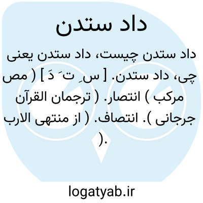 داد ستدن. [ س ِ ت َ دَ ] ( مص مرکب ) انتصار. ( ترجمان القرآن جرجانی ). انتصاف. ( از منتهی الارب ). دادستاندن. حق خود گرفتن. دادگرفتن: