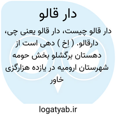 دارقالو. ( اِخ ) دهی است از دهستان برگشلو بخش حومه شهرستان ارومیه در یازده هزارگزی خاور ارومیه و پانصدگزی جنوب شوسه گلخانه به ارومیه واقع و جلگه ای است معتدل مالاریائی و سکنه آن 250 تن است. آب آن از شهری چای و محصول آنجا غلات، انگور، توتون، چغندر، حبوبات. شغل اهالی زراعت است راه شوسه دارد. ( از فرهنگ جغرافیایی ایران ج 4 ).