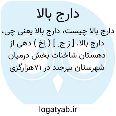 دارج بالا. [ رَ ج ِ ] ( اِخ ) دهی از دهستان زیرکوه بخش قاین شهرستان بیرجند. در 142هزارگزی جنوب خاوری قاین. 27 هزارگزی جنوب شاهرخت. کوهستانی. معتدل و دارای 112 تن سکنه است. آب آن از قنات. محصول آنجا غلات. شغل اهالی زراعت و مالداری است. راه مالرو دارد اهالی همیشه در این محل سکنی دارند. ( از فرهنگ جغرافیایی ایران ج 9 ).