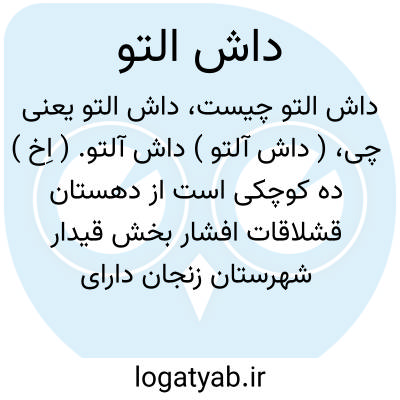 ( داش آلتو ) داش آلتو. ( اِخ ) ده کوچکی است از دهستان قشلاقات افشار بخش قیدار شهرستان زنجان دارای 15 تن سکنه. ( از فرهنگ جغرافیایی ایران ج 2 ).