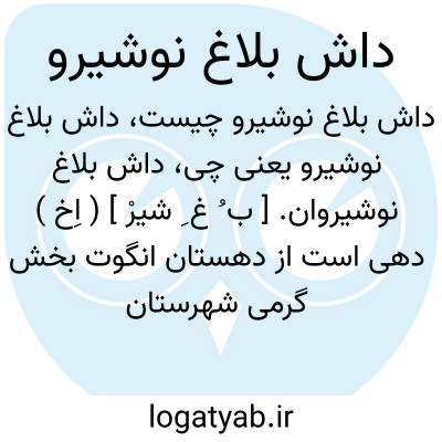 داش بلاغ نوشیروان. [ ب ُ غ ِ شیرْ ] ( اِخ ) دهی است از دهستان انگوت بخش گرمی شهرستان اردبیل. واقع در 37هزارگزی باختر گرمی و 15هزارگزی شوسه گرمی به اردبیل. کوهستانی و گرمسیر و دارای 60 تن سکنه است. آب آن از چشمه محصول آن غلات و حبوبات و شغل اهالی آنجا زراعت و گله داری و راه آنجا مالرو است. ( از فرهنگ جغرافیایی ایران ج 4 ).
