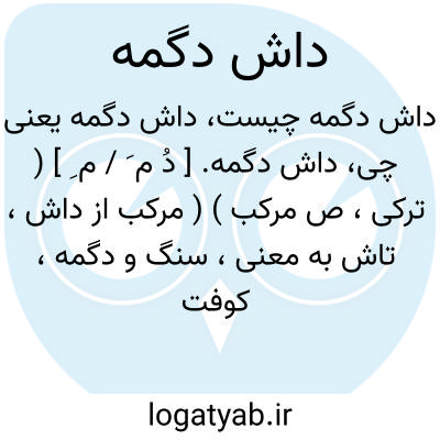 داش دگمه. [ دُ م َ / م ِ ] ( ترکی، ص مرکب ) ( مرکب از داش، تاش به معنی، سنگ و دگمه، کوفت ) به معنی کوفته بسنگ یا سنگ کوفته. و در تداول به معنی سخت محکم، که بدین زودیها پاره نشود ( جامه ). پُرتاب. داش دیمه.