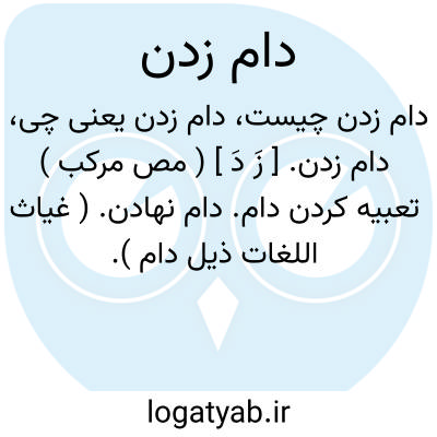 دام زدن. [ زَ دَ ] ( مص مرکب ) تعبیه کردن دام. دام نهادن. ( غیاث اللغات ذیل دام ).