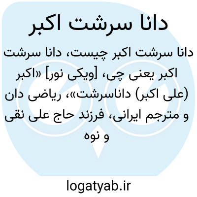 [ویکی نور] «اکبر (علی اکبر) داناسرشت»، ریاضی دان و مترجم ایرانی، فرزند حاج علی نقی و نوه حاج علی قلی صراف باشی زنجانی، در سال 1290ش، در تهران دیده به جهان گشود.